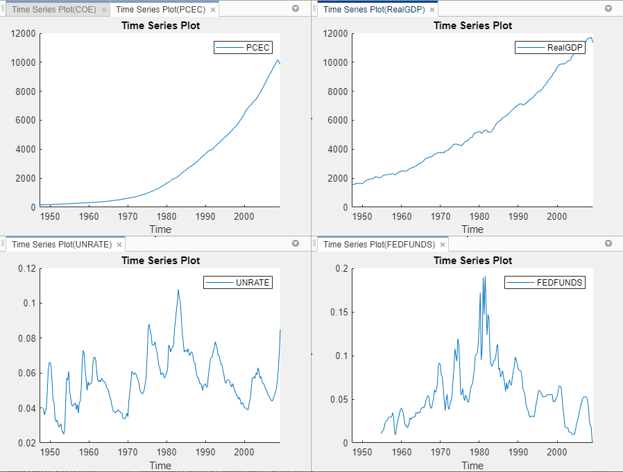 В командной строке загрузите Data_USEconModel.mat набор данных.