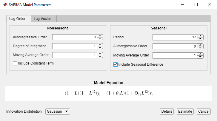 Устраните сезонный тренд, применив сезонную разницу 12-го заказа. На вкладке Econometric Modeler в разделе Преобразования установите значение Сезонный (Seasonal). 12. Затем щелкните Сезонный (Seasonal).