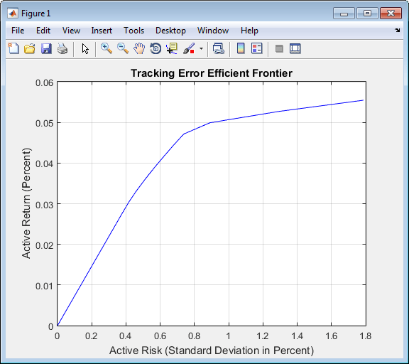Предположим, что вы хотите определить эффективный набор портфелей, которые минимизируют дисперсию разницы в доходности по отношению к данному целевому портфелю при условии заданной ожидаемой избыточной доходности. Среднее и стандартное отклонение этого избыточного возврата часто называют активным возвратом и активным риском соответственно. Активный риск иногда называют ошибкой отслеживания. Поскольку цель состоит в том, чтобы отслеживать данный целевой портфель как можно ближе, результирующий набор портфелей иногда называют границей эффективности отслеживания ошибок.