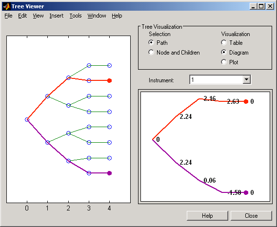 treeviewer диаграммы дерева цен следуют условию, согласно которому возрастающие цены появляются на верхней ветви дерева, и, таким образом, понижающиеся цены появляются на нижней ветви. И наоборот, для отображения процентных ставок снижающиеся процентные ставки появляются в верхней ветви (цены растут) и возрастающие процентные ставки в нижней ветви (цены падают).