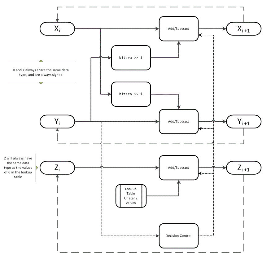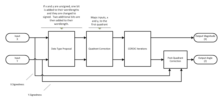 theta = cordicatan2(y,x,niters) выступает niters итерации алгоритма.