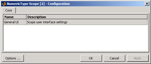 Диалоговое окно Конфигурация (Configuration) содержит ряд областей, каждая из которых содержит таблицу опций конфигурации. Инструкции по настройке опций на каждой панели см. в справочном разделе. В этом диалоговом окне имеется одна панель «Ядро» с одним параметром для общих параметров пользовательского интерфейса для пользовательского интерфейса области.