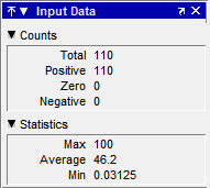 Панель «Входные данные» предоставляет статистическую информацию о значениях, отображаемых в данный момент в NumericScopeType объект.