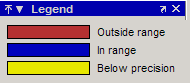 На панели «Легенда» области отображается информация о цветах, используемых областью для указания значений. Эти цвета представляют значения, которые находятся вне диапазона, в диапазоне или ниже точности при отображении в области.