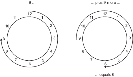 Например, общие повседневные часы используют арифметику по модулю 12. Числа в этой системе могут быть только от 1 до 12. Поэтому в системе «часов» 9 плюс 9 равно 6. Это может быть легче визуализировано как круг чисел: