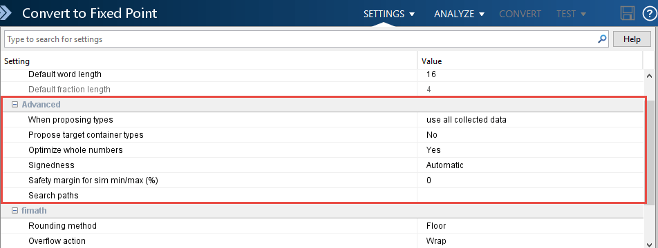 Перед началом преобразования рассмотрите цели преобразования в фиксированную точку. Вы реализуете свой алгоритм в C или HDL? Каковы ваши целевые ограничения? Ответы на эти вопросы определяют множество свойств фиксированной точки, таких как доступная длина слова, длина дроби и математические режимы, а также доступные математические библиотеки.