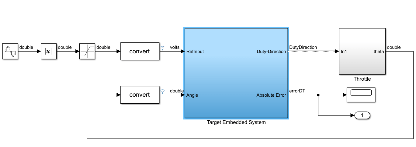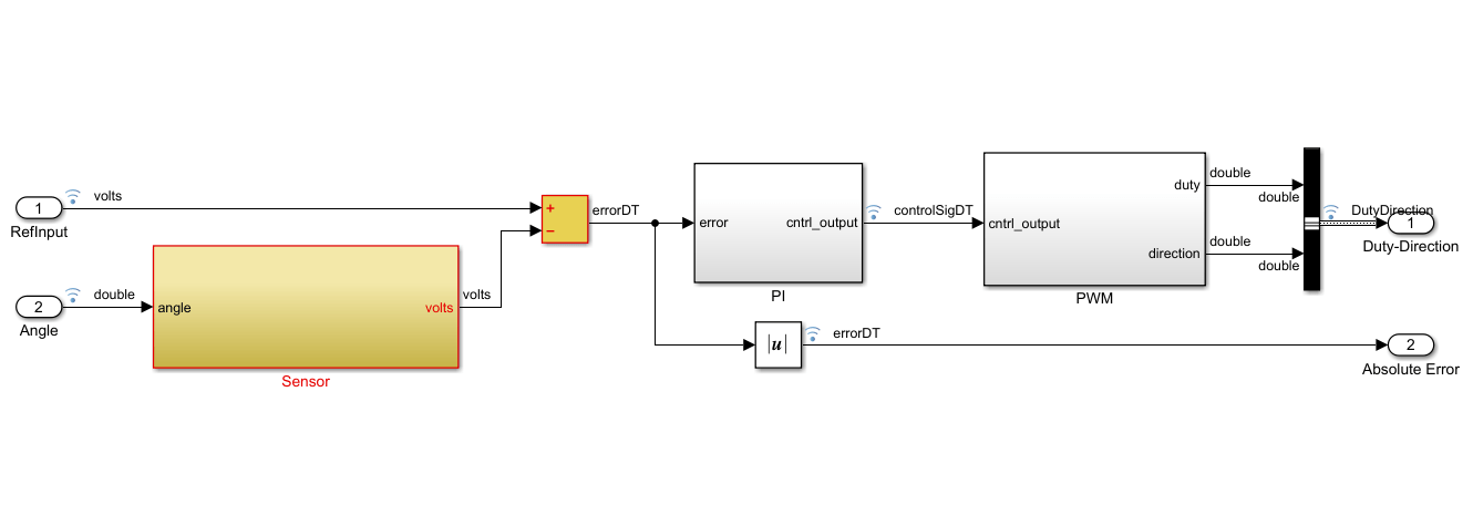 В следующей модели используется несколько различных типов объектов данных, включая Simulink.Bus, Simulink.NumericType, Simulink.LookupTable, и Simulink.Breakpoint объекты для определения типа данных. Инструмент «Фиксированная точка» используется для преобразования модели с плавающей запятой, включая объекты данных, используемые в модели, в фиксированную точку.