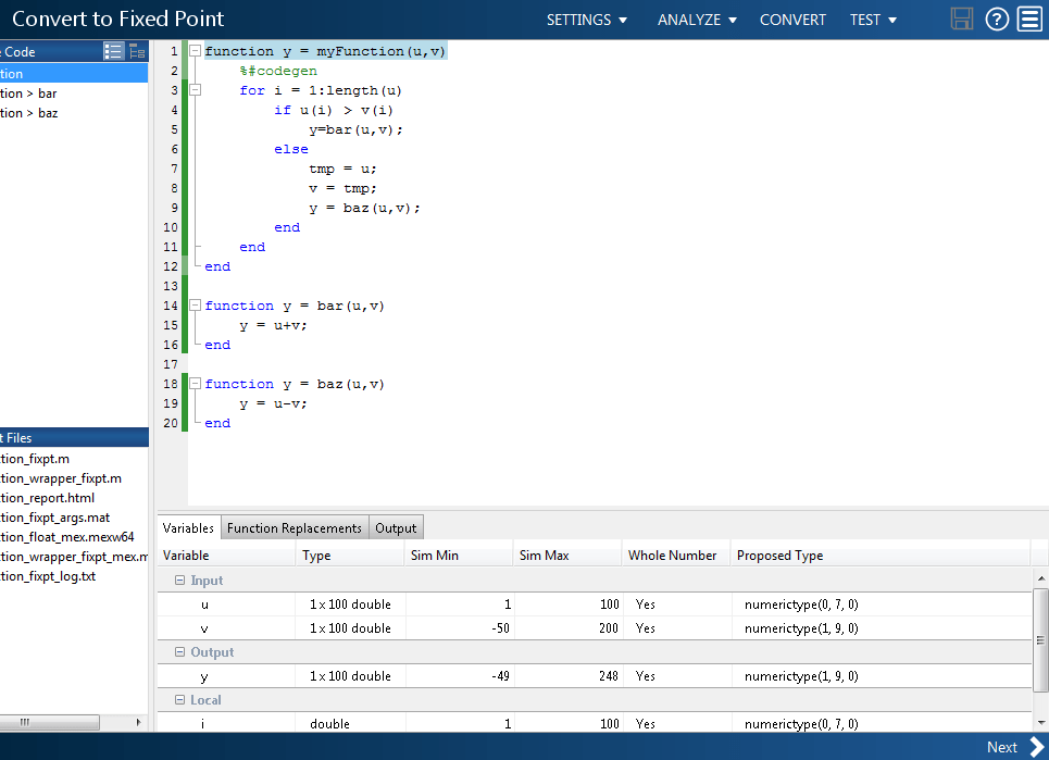 Чтобы завершить процесс преобразования и преобразовать функцию в фиксированную точку, щелкните Преобразовать (Convert).