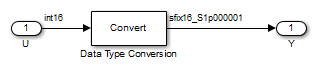 Для блока «Преобразование типов данных» задайте для параметра «Тип выходных данных» значение fixdt(1,16,1.000001,0).