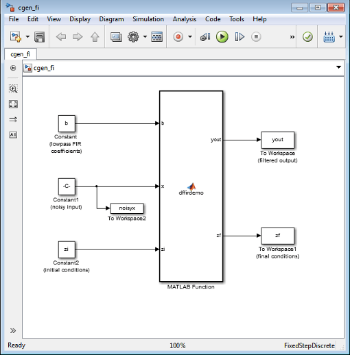 В следующем примере показано, как создать в Simulink ® фильтр FIR с фиксированными точками и нижними полосами. Для создания фильтра FIR используется программное обеспечение Fixed-Point Designer™ и функциональный блок MATLAB. В этом примере в показанной последовательности выполняются следующие задачи: