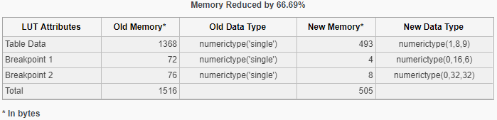 По завершении оптимизации оптимизатор сообщает память оптимизированной таблицы поиска. Можно отредактировать ограничения и запустить оптимизацию еще раз, чтобы добиться дальнейшего сокращения памяти.