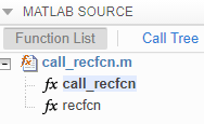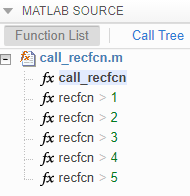 function y = call_recfcn(n) A = ones(1,n); x = 5; y = recfcn(A,x); end function y = recfcn(A,x) if size(A,2) == 1 || x == 1 y = A(1); else y = A(1)+recfcn(A(2:end),x-1); end end