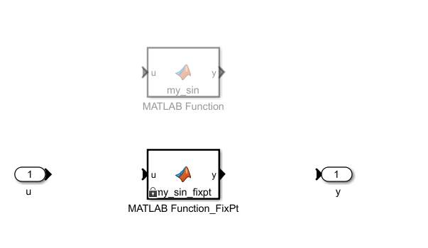 В этом примере показано, как заменить функцию, используемую в функциональном блоке MATLAB ®, более эффективной реализацией. Следующая модель содержит функциональный блок MATLAB, который вычисляет синус входного сигнала. Используйте представление кода для замены встроенногоsin с таблицей подстановки.