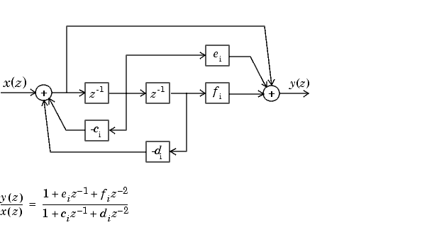 В каноническом каскадном виде серии передаточная функция H (z) записывается как произведение передаточных функций первого порядка и второго порядка: