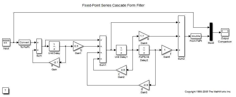 Реализация Hex (z) с использованием блоков Simulink ® с фиксированной точкой показана на следующем рисунке. Можно отобразить эту модель, введя