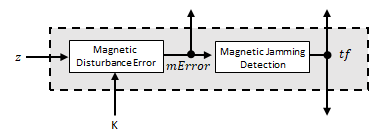 Если магнитное заклинивание не было обнаружено в итерации тока, оценка магнитного вектора, m, обновляется с использованием апостериорной ошибки магнитного возмущения и апостериорной ориентации.