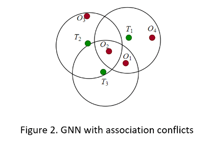 Метод GNN является методом назначения единой гипотезы. Для каждого нового набора данных целью является назначение глобальных ближайших наблюдений существующим дорожкам и создание новых гипотез дорожек для неназначенных обнаружений.