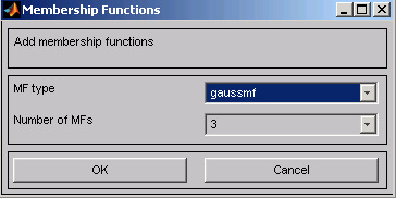 Выберите «Редактирование» > «Добавить MF», чтобы открыть диалоговое окно «Функции членства».