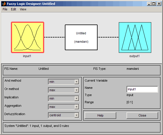 Откроется универсальный конструктор нечеткой логики без названия с одним входом 1 и одним выходом 1.