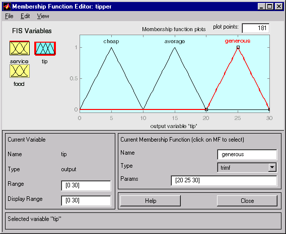 Процесс задания функций членства для примера с двумя входами, tipper, является следующим: