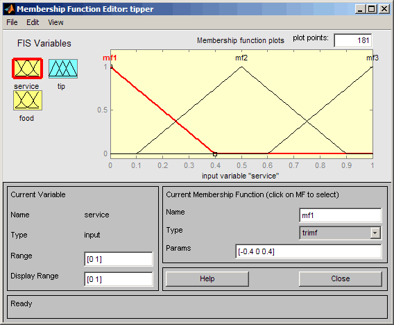 Дважды щелкните по входной переменной service , чтобы открыть редактор функций членства.