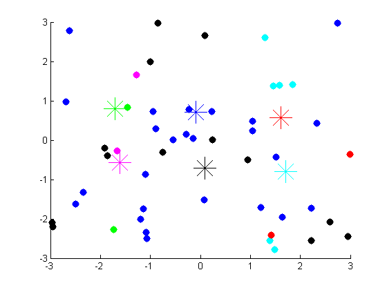 plot(manyminsm(i).X(1), manyminsm(i).X(2), '*', ...