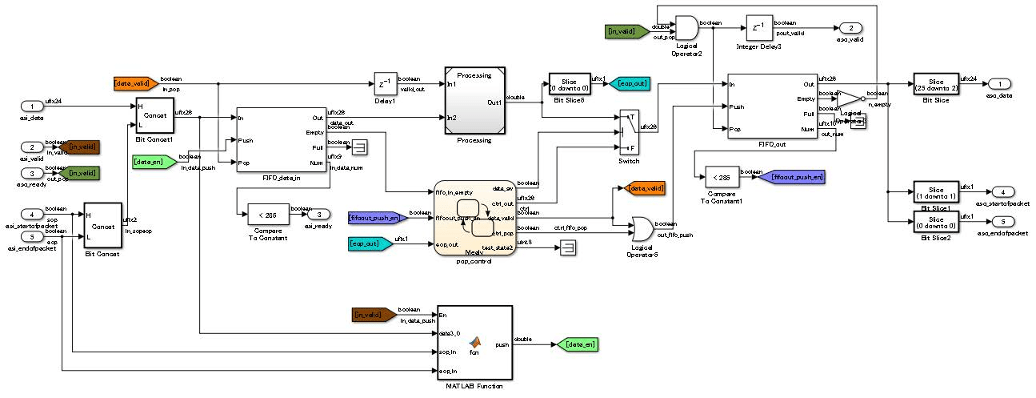 Комбинированную логику можно моделировать с помощью блоков Stateflow. Для более сложных операций и операций, изменяющих время, таких как вставка и обработка трубопровода, используйте блоки Simulink. Затем можно использовать логику потока состояний для обработки результата, вычисленного из блоков Simulink.