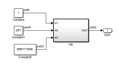 Для создания интерфейса выберите BlackBox реализация для одного или нескольких блоков подсистемы. Рассмотрим следующую модель, содержащую подсистему top, которое является тестируемым устройством.