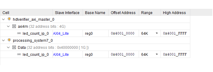 В этом примере двумя главными IP-адресами AXI являются верификатор HDL MATLAB в качестве главного IP-адреса AXI и процессор ARM. На основе синтаксиса MasterAddressSpace, для верификатора HDL MATLAB в качестве AXI Master IP, AXI Master Instance Name является hdlverifier_axi_master_0 и Address_Space of Instance Name является axi4m.