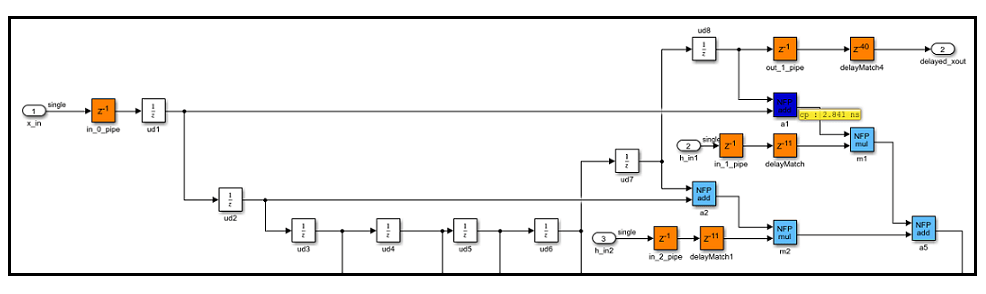 Если есть single типы данных в вашей конструкции и вы используете Native Floating Point иногда сценарий оценки критического пути выделяет один оператор с плавающей запятой в создаваемой модели. Генератор кода выделяет один блок, поскольку алгоритмы с плавающей запятой требуют больших вычислений, а критический путь может быть внутренним путем от регистра к регистру в операторе с плавающей запятой.