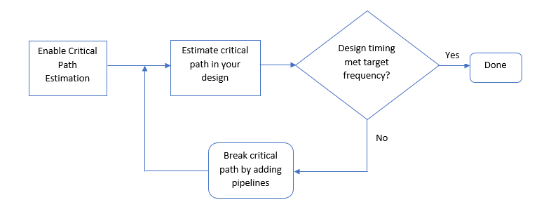 Чтобы быстро определить наиболее вероятный критический путь в конструкции, используйте оценку критического пути. При оценке критического пути нет необходимости выполнять синтез или генерировать код HDL. Оценка критического пути ускоряет этот итеративный процесс поиска критического пути и последующей оптимизации критического пути до тех пор, пока время проектирования не достигнет желаемой частоты.