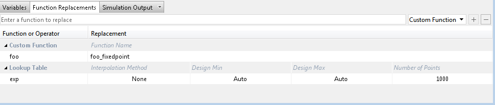 Из этого списка можно добавлять и удалять замены функций. При вводе замены функции при построении проекта используется функция замены. Если замена не введена, инструмент использует тип, указанный в исходном коде MATLAB для функции.