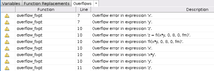 Если исходный алгоритм использует масштабированные двойные значения, средство также предоставляет информацию о переполнении для этих выражений.