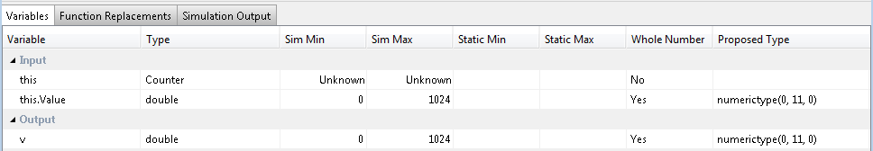 Чтобы вычислить производные диапазоны и предложить типы данных на основе этих диапазонов, предоставьте статические минимальные и максимальные значения или предлагаемые типы данных для всех входных переменных. Чтобы улучшить анализ, введите как можно больше статической информации о диапазоне для других переменных. Можно вручную вводить диапазоны или продвигать диапазоны моделирования для использования в качестве статических диапазонов. Введенные вручную статические диапазоны всегда имеют приоритет над диапазонами моделирования.