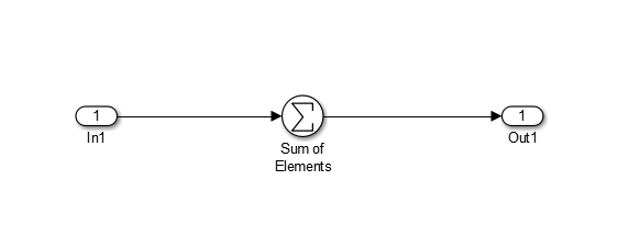 Тестируемое устройство: vsum подсистема, показанная на следующем рисунке. Подсистема содержит блок Sum, сконфигурированный для суммирования векторов.