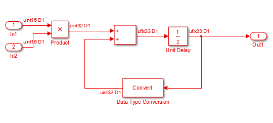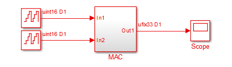 В этом примере показан процесс создания модели косимуляции. Пример модели, hdl_cosim_demo1, реализует простой алгоритм умножения и накопления (MAC). Откройте модель, введя имя в командной строке MATLAB ®: