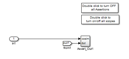 На следующем рисунке показаны Assert_Out1 подсистема для gm_hdl_cosim_demo1_mq0 модель.