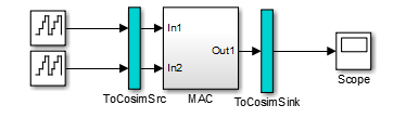 На предыдущих рисунках показаны простые скалярные входные данные. Сигналы сложных и векторных типов данных требуют дальнейшей обработки. Дополнительные сведения см. в разделе Комплексные и векторные сигналы в создаваемой модели косимуляции.