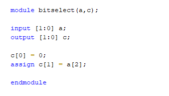 Например, рассмотрим этот код Verilog для bitselect модуль:
