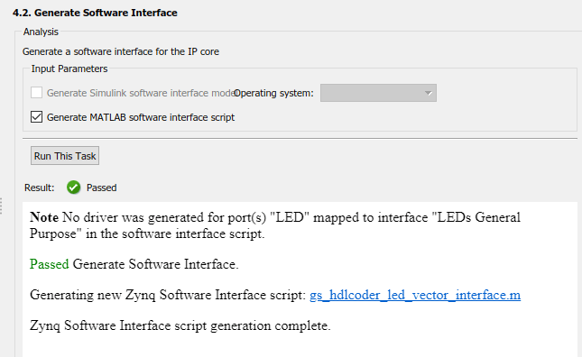 При необходимости можно создать собственные пользовательские ссылочные конструкции и интегрировать сгенерированное ядро IP в ссылочную конструкцию. Для рабочего процесса не требуется программное обеспечение Embedded Coder ®, поскольку не требуется создавать встроенный код, выполняемый на процессоре. Это означает, что рабочий процесс имеет задачу Создать программный интерфейс, но создать модель программного интерфейса невозможно. Если установлен HDL Verifier™, в задании Set Target Reference Design (Задать целевое эталонное проектирование) установите значение Insert JTAG MATLAB as AXI Master (требуется верификатор HDL) равнымon. Затем можно создать сценарий интерфейса программного обеспечения в задаче Создать интерфейс программного обеспечения (Generate Software Interface) для быстрого прототипирования и тестирования основных функций HDL IP с помощью MATLAB AXI Master. См. раздел Создание сценария интерфейса программного обеспечения для проверки и быстрого создания прототипа IP-ядра HDL.