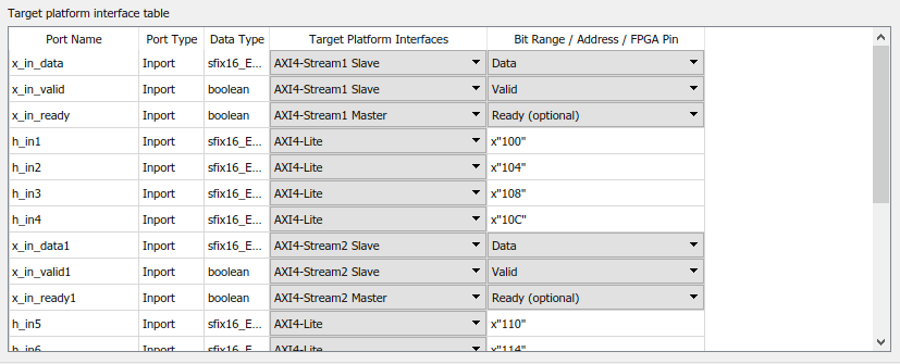 При сопоставлении портов DUT с несколькими каналами интерфейса AXI4-Stream можно использовать только скалярные порты. В векторных портах могут быть самое большее один канал Владельца AXI4-потока и один Рабский канал AXI4-потока.
