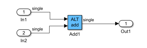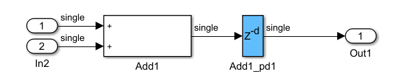 Информацию о задержке целевого IP-адреса с плавающей запятой можно получить из созданной модели после генерации кода HDL. Например, рассмотрим этот блок добавления в Simulink с входами двойного типа данных.