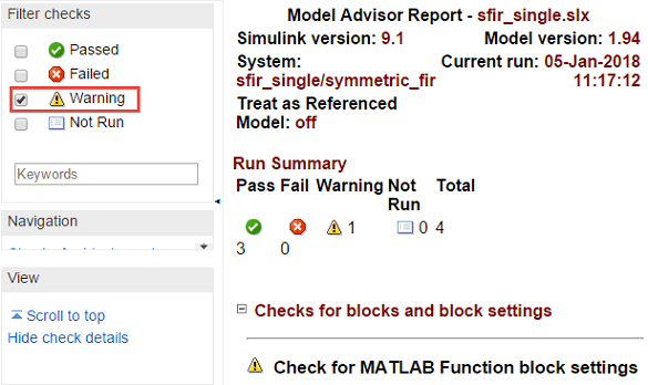 Если модель или ссылочная модель имеет неоптимальное условие, проверки могут завершиться неуспешно. После выполнения анализа Model Advisor