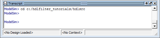Скомпилировать созданные файлы VHDL фильтра и тестового стенда. В симуляторе Mentor Graphics ModelSim выполняется компиляция кода VHDL с помощью vcom команда. Следующие команды компилируют код VHDL тестового стенда фильтра и фильтра.