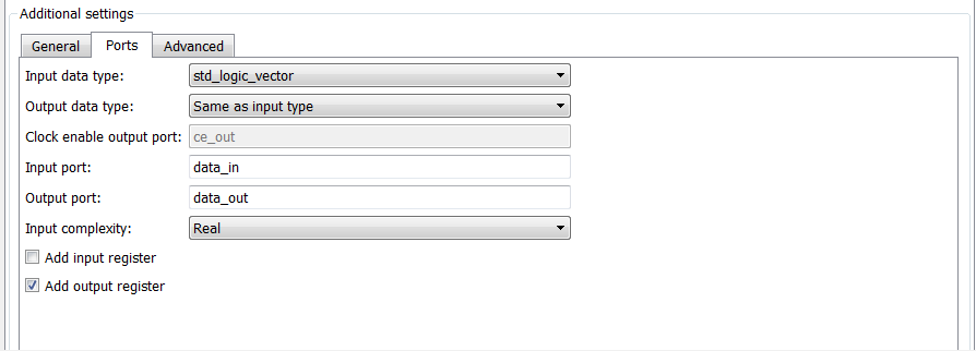 Снимите флажок для опции Добавить входной регистр. Теперь панель «Порты» выглядит следующим образом.