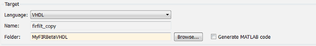 Учитывая этот параметр, кодер создает подпапку MyFIRBetaVHDL в текущей рабочей папке и записывает созданные файлы HDL в эту папку.