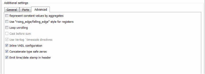 Выберите параметр Use 'rising _ edge' для регистров. Теперь панель Дополнительно (Advanced) отображается, как показано на следующем рисунке.