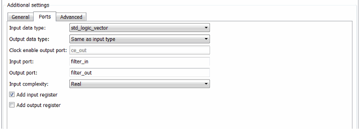 Снимите флажок для опции Добавить выходной регистр. Теперь появится панель «Порты», как показано на следующем рисунке.