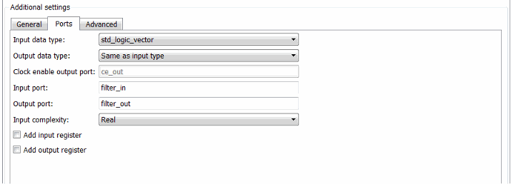 Альтернатива командной строки: generatehdl и функции со свойствами AddInputRegister иAddOutputRegister для добавления дополнительного входного или выходного регистра.
