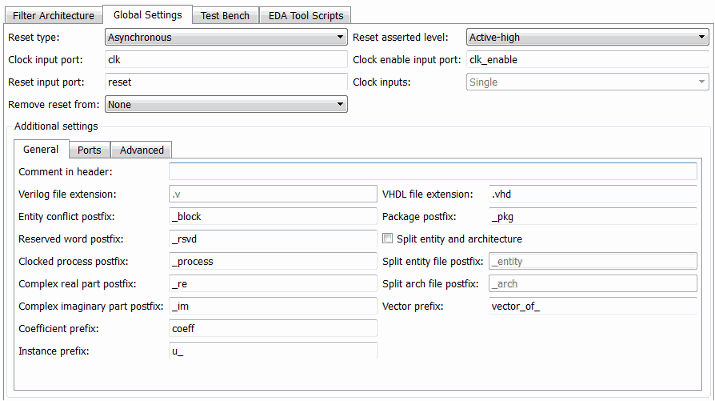 Альтернатива командной строки: generatehdl свойства ForceReset, ResetLength, и HoldTime для перенастройки сбросов стенда.